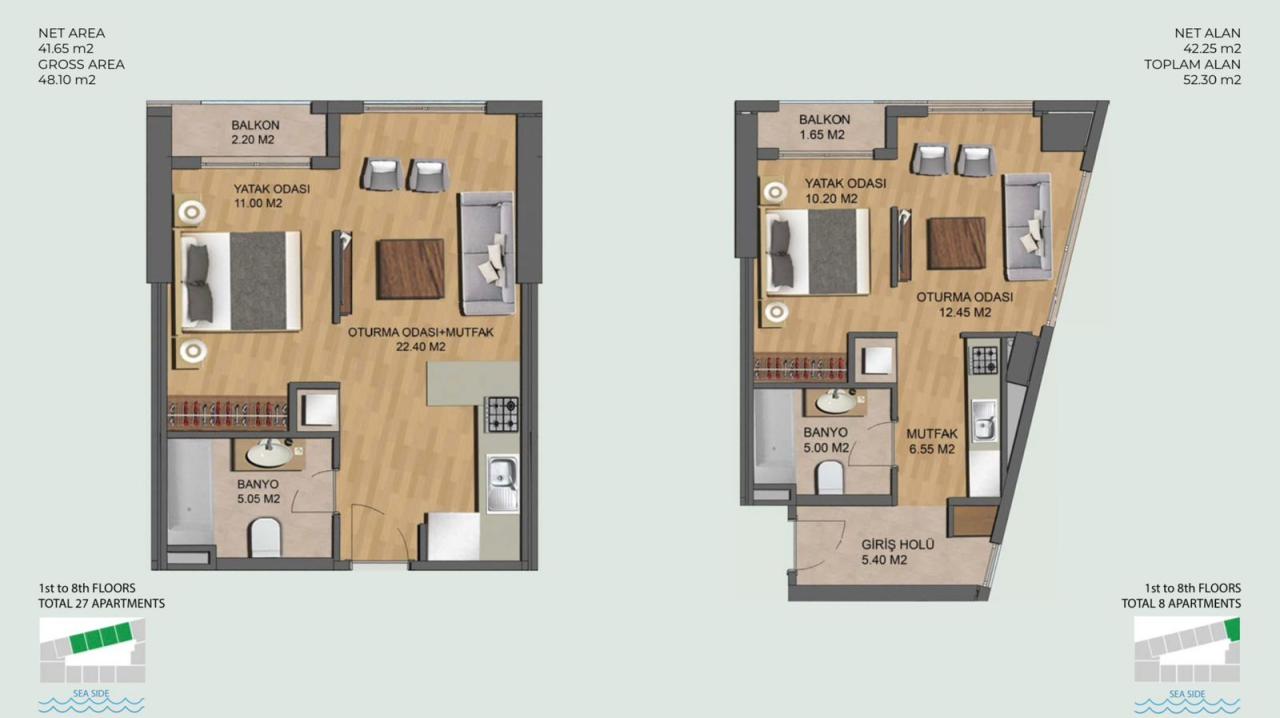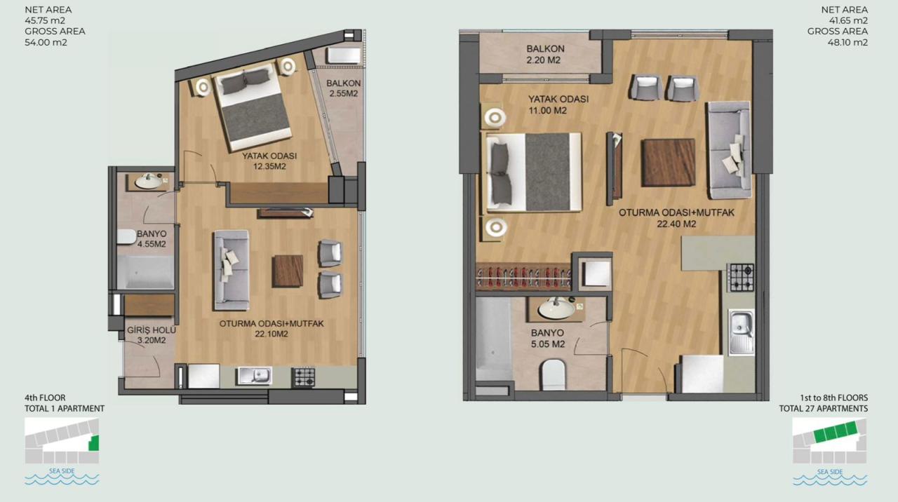 We offer for sale 1-bedroom apartments ranging from 41 to 48 m2 in a modern complex with a swimming pool in a bar