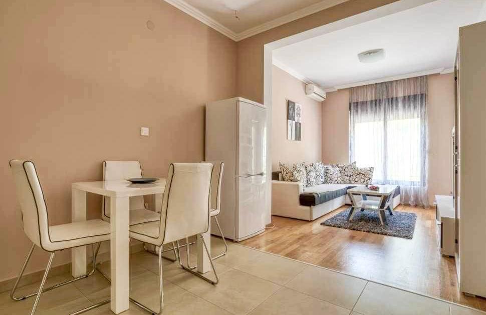 Spacious, bright apartment with a total area of 55 m2 (terrace included), located in the picturesque suburb of Budva, in Becici. You can walk to the sea in 3-5 minutes on a flat road. Terms of annual rental from June 1: 750 € per month (first and last) + deposit or 850 €, with pets (first month, 2 last) + deposit.