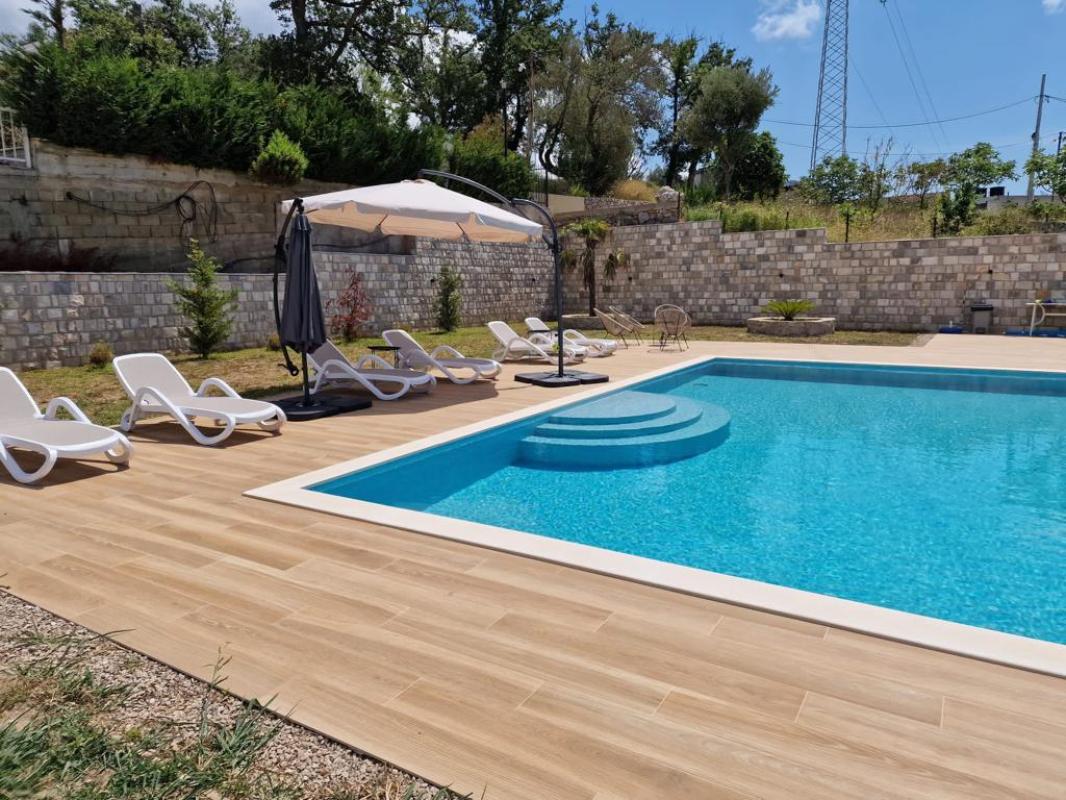For rent until 06/01/2026 an apartment in a villa on the 1st floor (ground floor) with a panoramic swimming pool and a huge territory in the Belishi district of Bar. The entrance to the first floor and the second floor are separate, the guests do not interfere with each other. On the ground floor of the villa there are 3 bedrooms, a large kitchen - living room, a bathroom with shower and a terrace. There is all the necessary furniture and appliances for a comfortable stay. Swimming pool with panoramic sea and mountain views. Large territory for a comfortable stay. Barbecue area. Parking. The cost is 1,500 euros per month + utilities. Payment immediately: for the first month + last month + deposit. For summer rentals (June, July, August) the cost is 350 euros per day. Utilities are included.