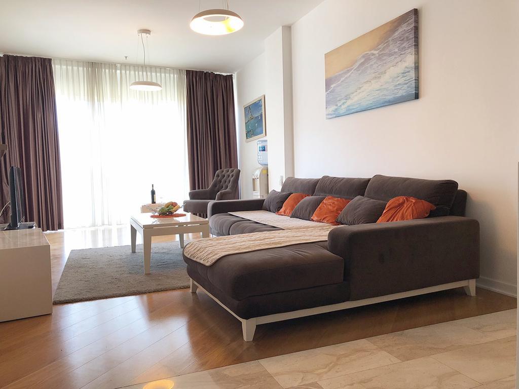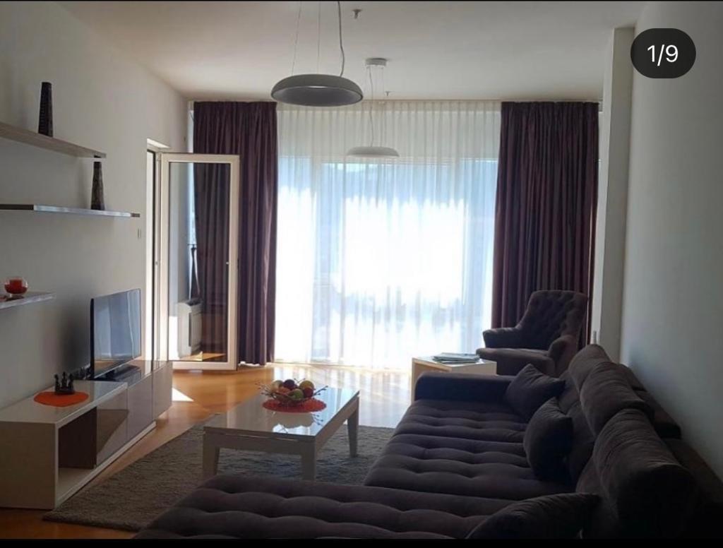 For rent one-bedroom apartment of 67 m2.On the seventh floor with a beautiful view. The sea is 100 meters away. The center of Budva. A parking space is rented separately. 200 euros per month. The minimum rental period is 6 months. Payment in advance plus utilities plus deposit.