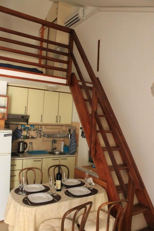 The area of the apartment is 40 m2, two-level. On the ground floor there is a living room, a kitchen, a bathroom, and on the second floor there is a bedroom. Direct amazing view of the sea and mountains.