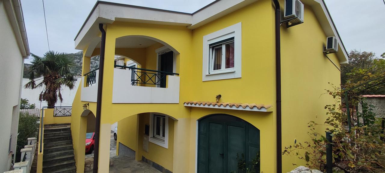 House for sale for 2 apartments in Sutomore, Hai-Nehai. The house area is about 200m2, the plot area is 334m2. Two spacious apartments. The structure of each: kitchen, dining area, living room with fireplace, 2 bedrooms, 2 bathrooms, terrace with a view of Hai Nehai Mountain. The house has central heating. Separate laundry room. Parking for 2 cars, fruit trees, fenced territory. Payment in rubles is possible!