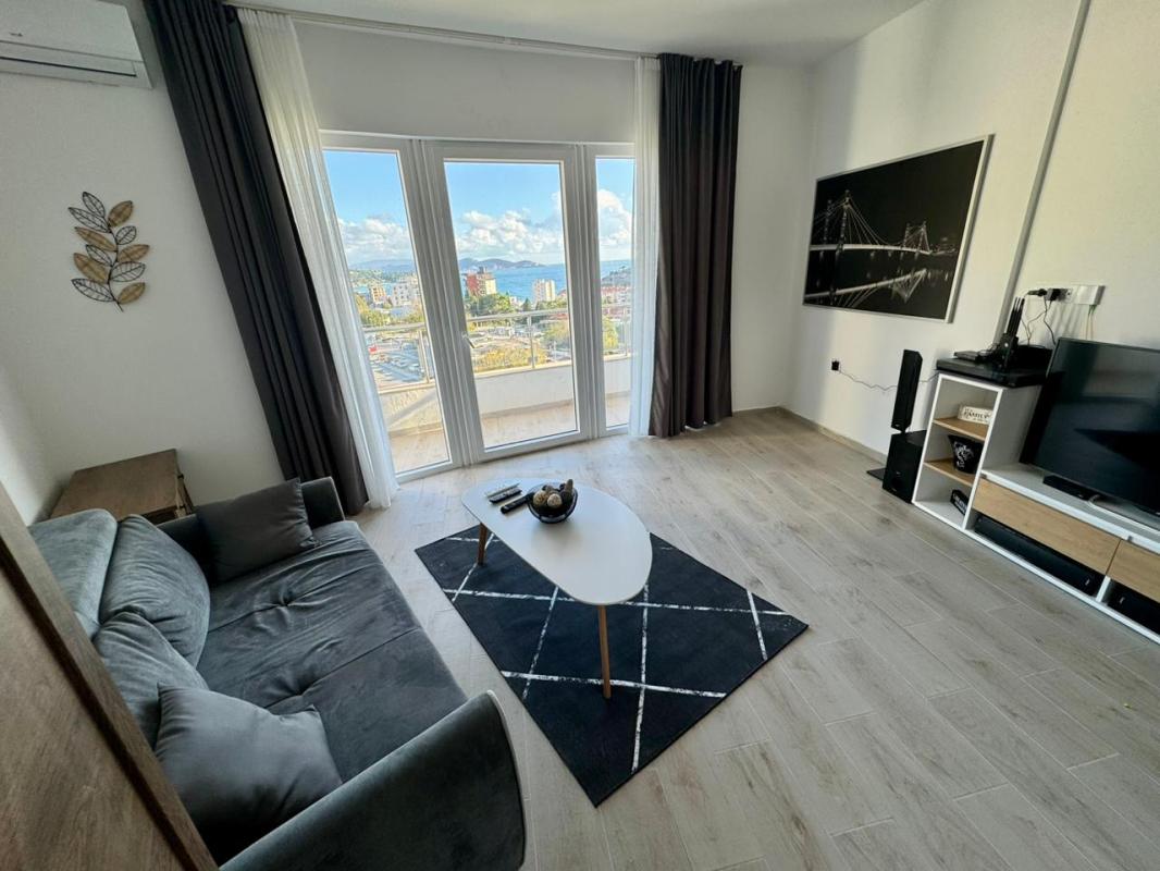 The apartment is located on the 5th floor in a new building in the very center of the city with a magnificent direct sea view!