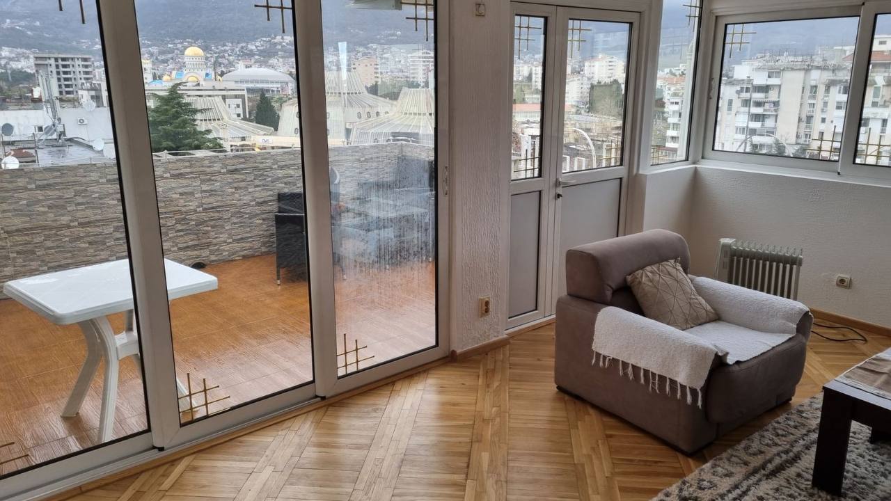 Продается квартира с 2 спальнями, с большой террасой 90 кв.м в центре Бара. Полностью меблирована. Вся инфраструктура находится в 3 минутах ходьбы.
