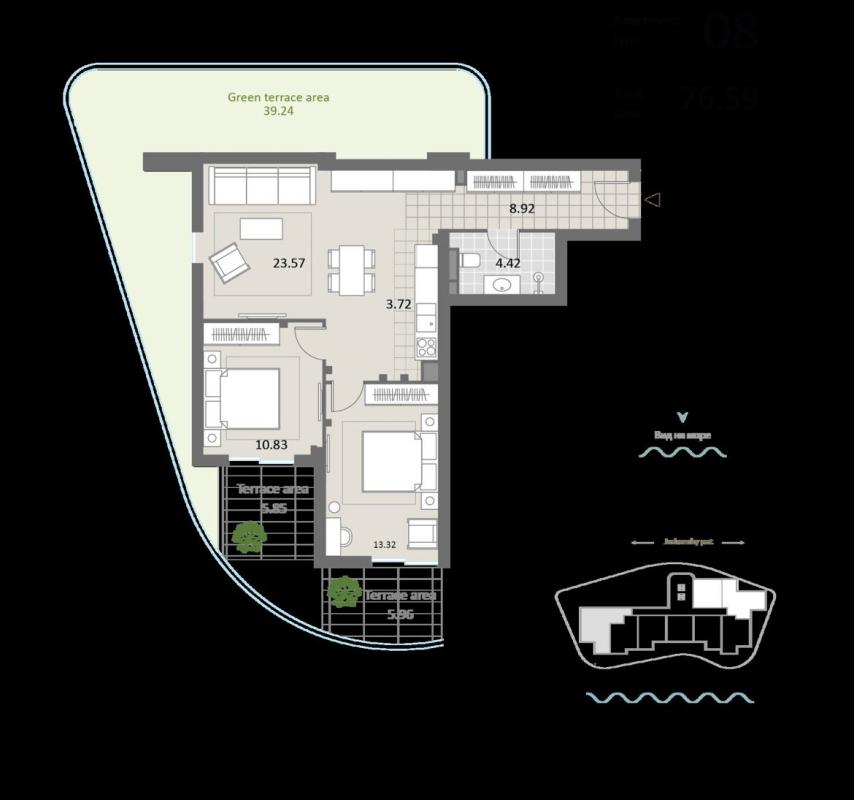Объект #3116. Продается новая квартира 116м2в новом элитном комплексе на берегу моря