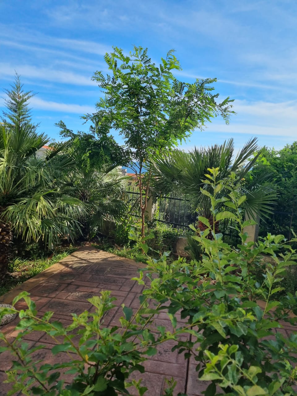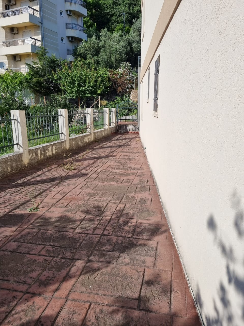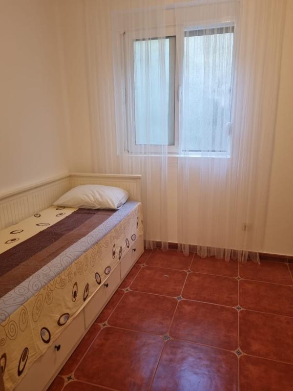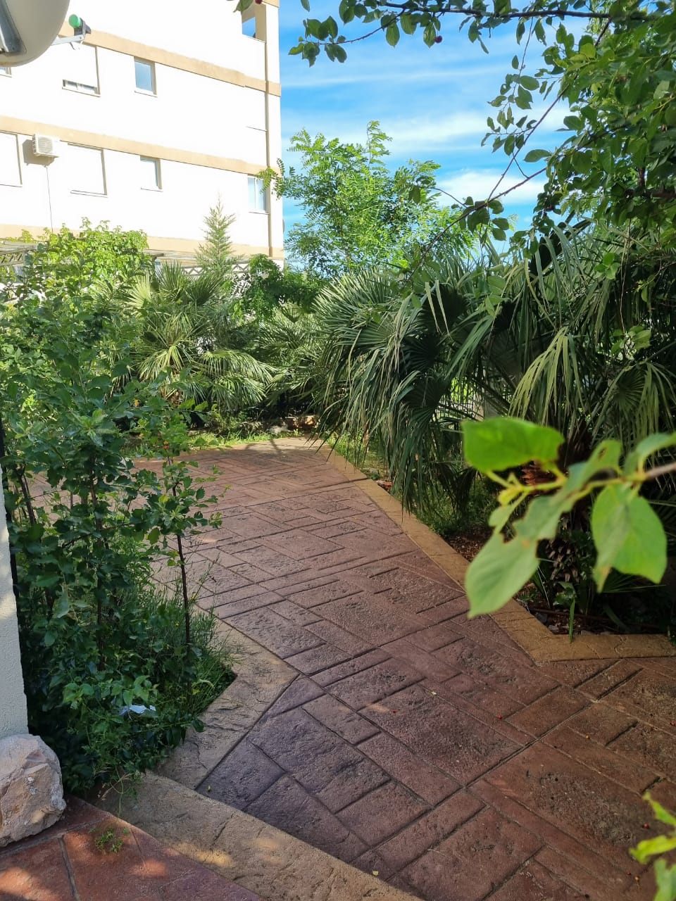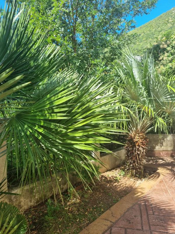 Квартира 90 м2. Структура: Коридор, гостиная с кухней, три спальни, три ванные комнаты, терраса, прилегающий участок. Находится на нулевом этаже. Имеется дополнительный вход на участок, огорожен забором . На участке много зелени. С террасы открывается вид на море. Общая парковка. Есть возможность купить паркинг место в гараже 15000 евро.