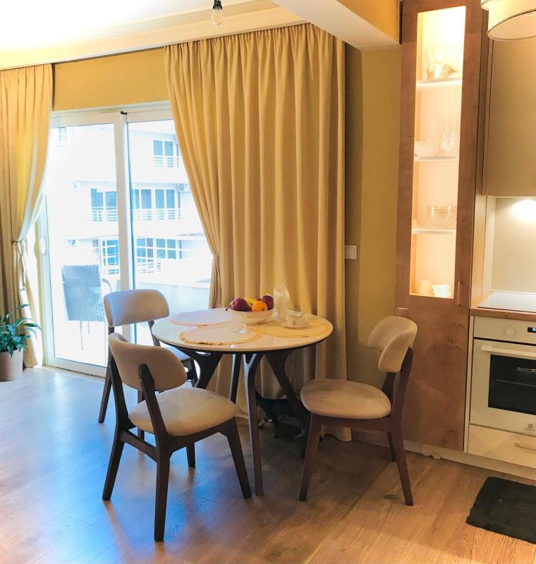 Квартира солнечная, солнце встаёт со стороны гостиной. Терраса с видом на город и море. Полностью готова к проживанию.