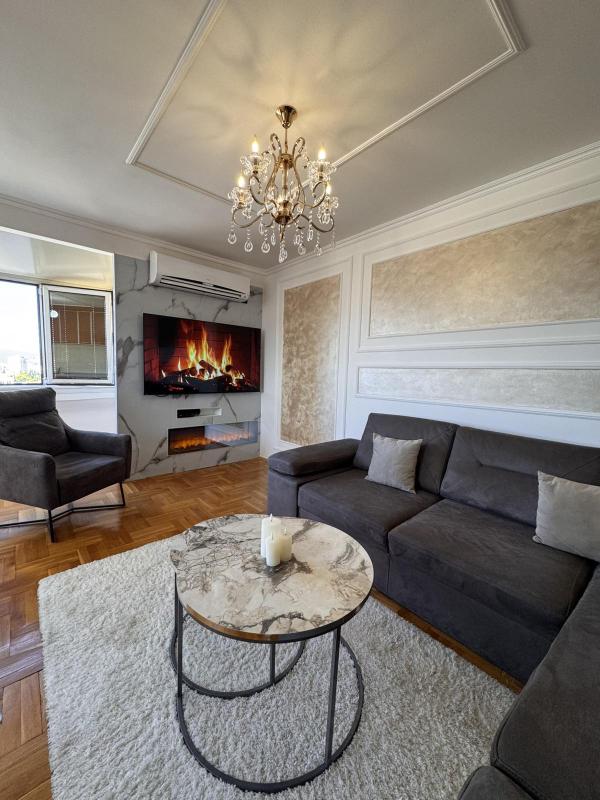 Квартира на 8 (последнем этаже) в здании с лифтом. В квартире: 3 спальни, гостиная, просторная кухня со столовой, коридор, полноценная ванная комната. Квартира после ремонта и меблированна стильной мебелью. Расположение: строгий центр, вид из окна на весь город со всех сторон: Миллениум, фонтан на площади Республики, храм, холм Горица.