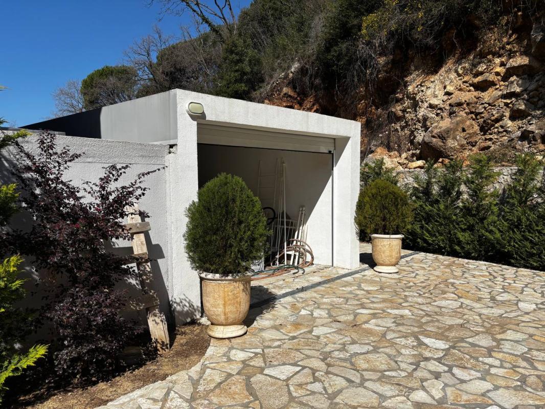 На первом этаже расположены кухня, столовая и просторная гостиная. На втором этаже находится 1 спальня, комната/маленькая гостиная с камином, санузел, кладовая/постирочная и очень большая крытая терраса с приятным видом на море. Третий этаж включает 2 спальни, санузел и небольшую террасу. Все уровни соединены внутренней лестницей. Установлена система тёплого пола. На участке оборудован бассейн, есть крытый гараж и ещё 4 парковочных места. Дом подключён к городскому водопроводу. На территории сад, зону отдыха с барбекю, места для шезлонгов. Перед домом необустроенный участок земли 550 м2.