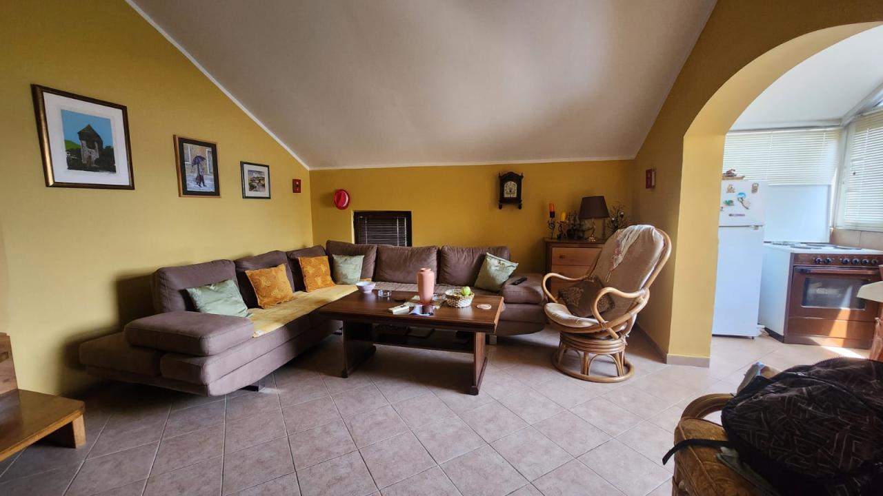 Удобан двоетажни стан са функционалним распоредом: спаваћа соба, кухиња, дневни боравак, купатило.