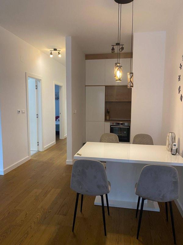 Структура: дневни боравак комбинован са кухињом, 2 спаваће собе, 2 купатила. Стан је намештен и опремљен свим потребним апаратима.