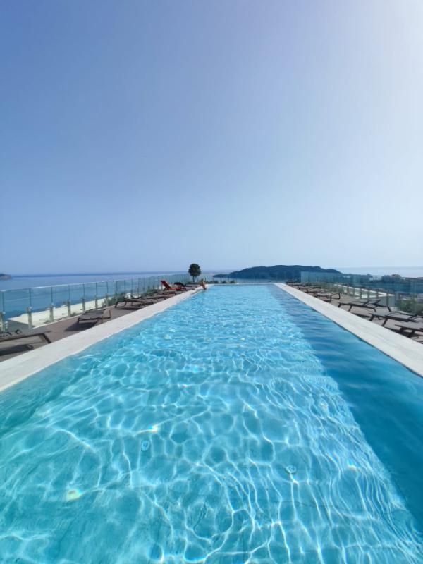Потрясающий запањујући базен на крову који пружа прекрасан поглед на околину и море.