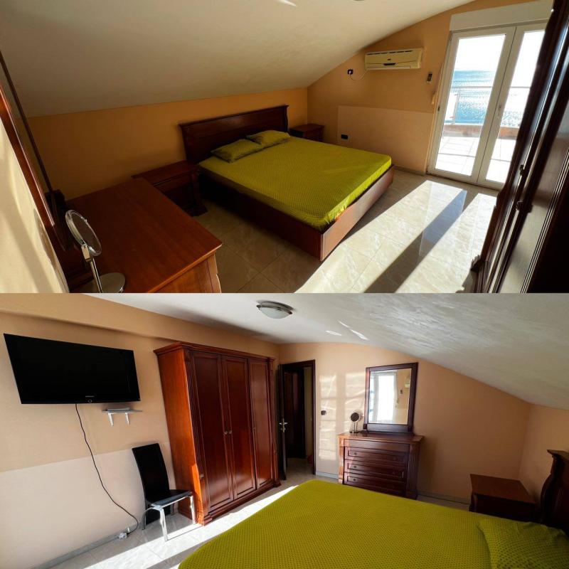 Пентхоусе на најбољој локацији у граду, са запањујућим погледом на море. Површина је 183м2, огроман простор упоредив са приватном кућом, са могућношћу боравка до 9 људи. У стану: 3 спаваће собе (једна на првом спрату (двоспратна), две на другом) +раскладна диван, 3 санузла. Свака соба има свој балкон-терасу са погледом на море. Велики складишни простор, клима уређај у свакој соби, јацуззи, 2 машине за прање веша, Машина за прање судова, постељина, пешкири, посуђе, брзи ВиФи. Подно грејање на целој површини. Блокирано место на паркингу. Треадмилл са погледом на море. У радијусу од 500м: продавнице, апотека, шеталиште са кафићима и ресторанима. Плаћање: месечно, плус струја.