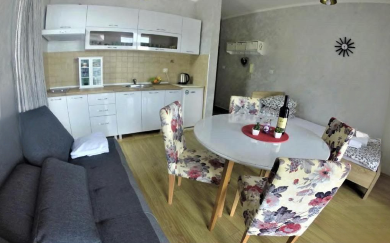 Стан-студио површине 32м2 на 3. спрату у новој згради. Студио са балконом. Одустаје најмање 1 годину. Студио је намештен и са техником: клима уређај, ТВ, фрижидер, електрични шпорет, машина за прање веша. Мирно подручје, до мора 7 минута, до комплекса Сплендид 5 минута хода, у близини продавнице. Без кућних љубимаца. Плаћање месечно + комуналије. Плаћање одмах: за прва 2 месеца + 1 последњи месец + депозит.