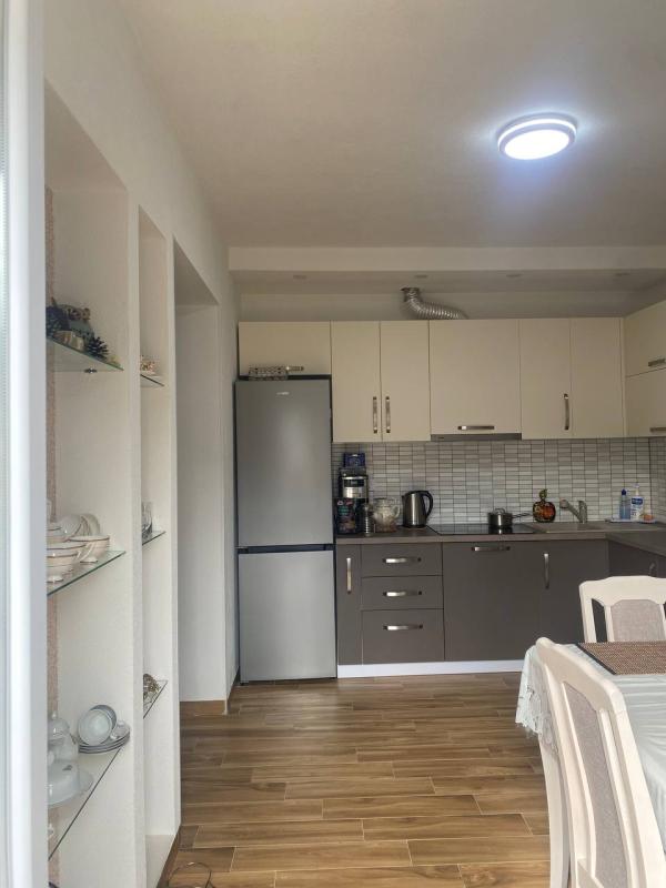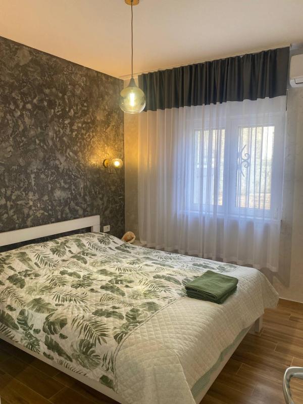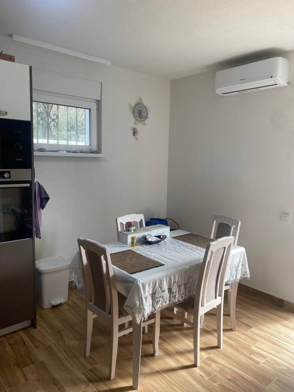 Светао и простран стан, налази се на преземлу, површина 73 м2. Структура стана: ходник са великим ормаром, кухиња са великим трпезаријом (велики фрижидер, шпорет са рерном, машина за посуђе, апарат за кафу), велики дневни боравак са софом и ТВ-ом, две спаваће собе са двокреветним креветима и пространим ормарима. Клима уређаји у собама. Купатило са туш кабином, са машином за прање веша. У дворишту је паркинг место. Своје ограђено двориште, љети базен. Простор за роштиљ, пергола. Намештај и уређаји одличног квалитета, први закуп. Кућа је 10 минута од мора, не на планини, у приступачности: кафићи, супермаркети, тржиште, аутостанција. Без животиња. Изнајмљивање за годину дана. Плаћање месечно + комуналије. Плаћање одмах: за први месец + 2 последња месеца + депозит.