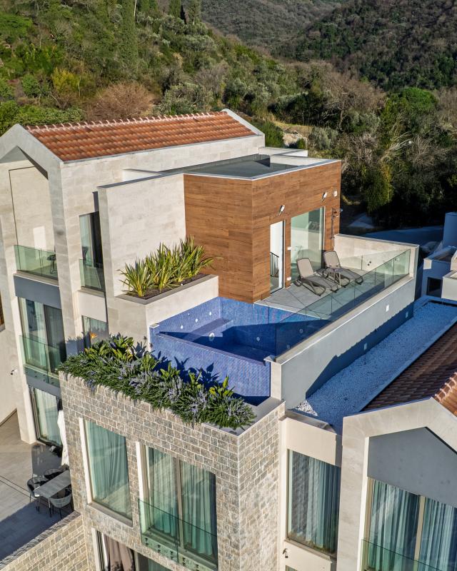 Нови луксузни комплекс у близини обале Порто Монтенегро. Овај савремени комплекс апартмана, градских кућа и вила налази се у округу Дона Лаетиа. До мора се може доћи пешице за 7 минута. Центар града Тиват удаљен је 1 минут вожње, а аеродром је удаљен 5 минута вожње. У близини се налазе игралишта за децу и Међународна школа Книгхтсбридге. Пројекат се састоји од три дела. Први део је завршен, а станови су доступни за продају. Други део би требало да буде завршен у децембру 2026. У трећем делу ће бити изграђене виле. Сви апартмани и пентхауси имају приватне базене, балконе и терасе, као и паркинг места.