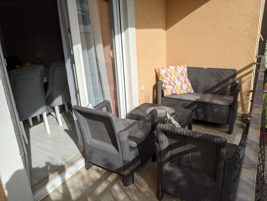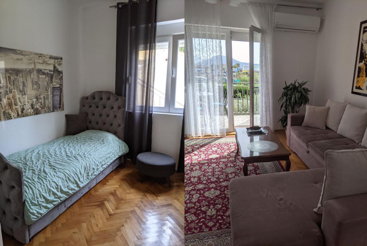 Продаје се двоспратна кућа укупне стамбене површине 152 м2 са појединачним апартманима од 35 м2 на парцели од 358 м2 на пешачкој удаљености до плаже. Пред кућом је опремљен лични паркинг за 3 аутомобила, гаража од куће површине 35 м2 је прерађена у једнособачни стан са одвојеном спаваћом собом, кухињом-гостионицом и санузлом. Структура куће-приземље-наткривена тераса, две спаваће собе, купатило, тераса. Такође, са стране терасе, у башти се налази додатни купатило и техничка просторија. Други спрат је пространа дневна соба / кухиња, две спаваће собе, две терасе. У башти расту маслине.