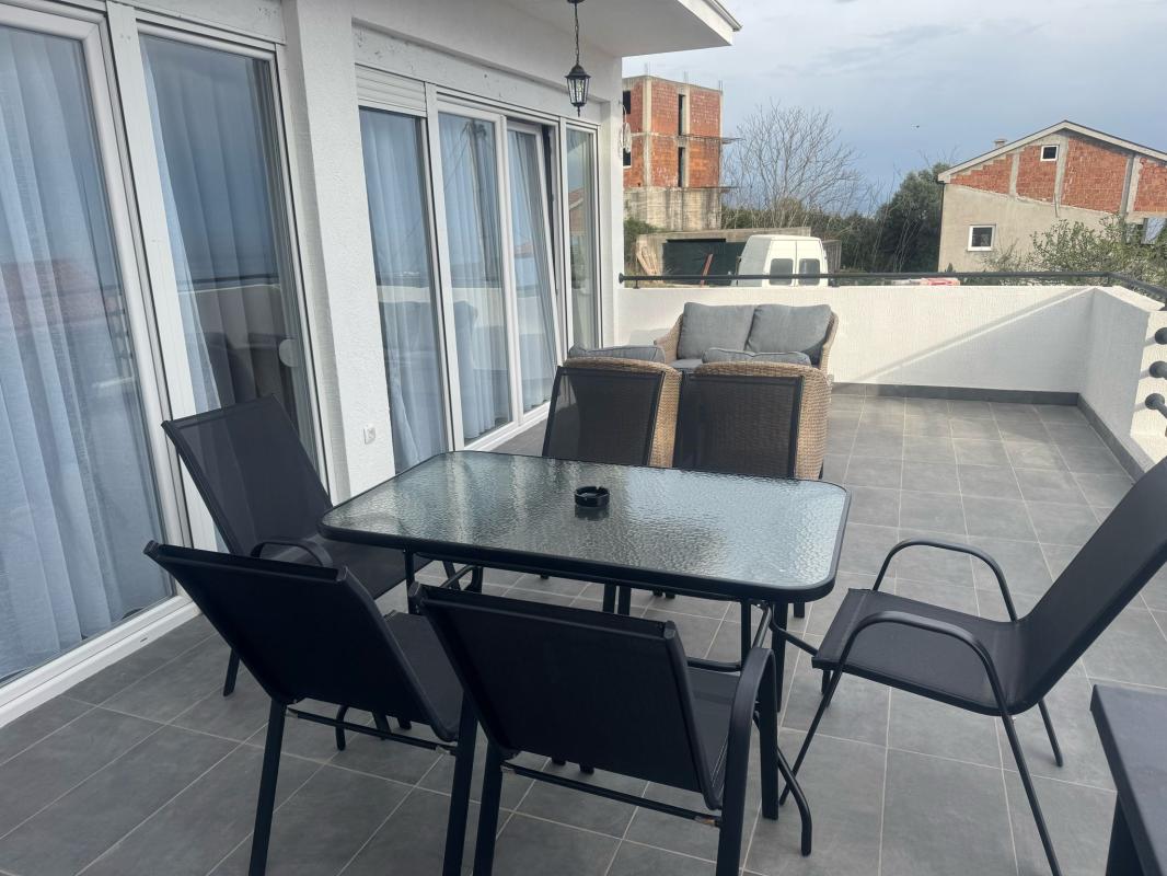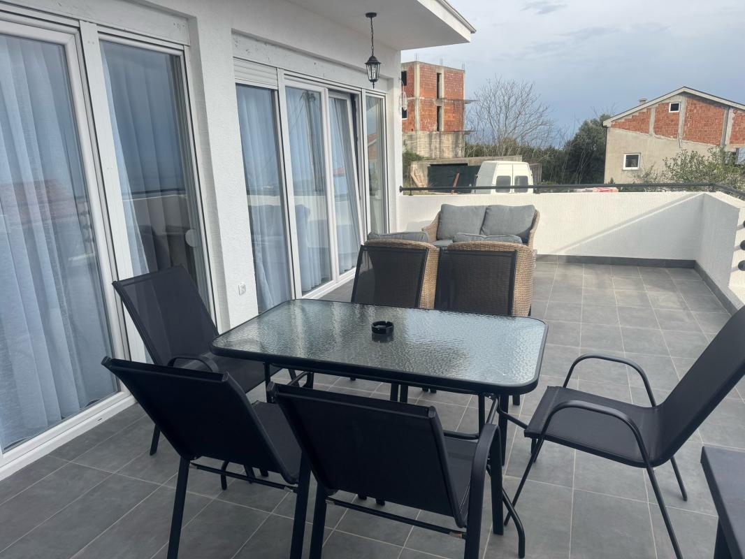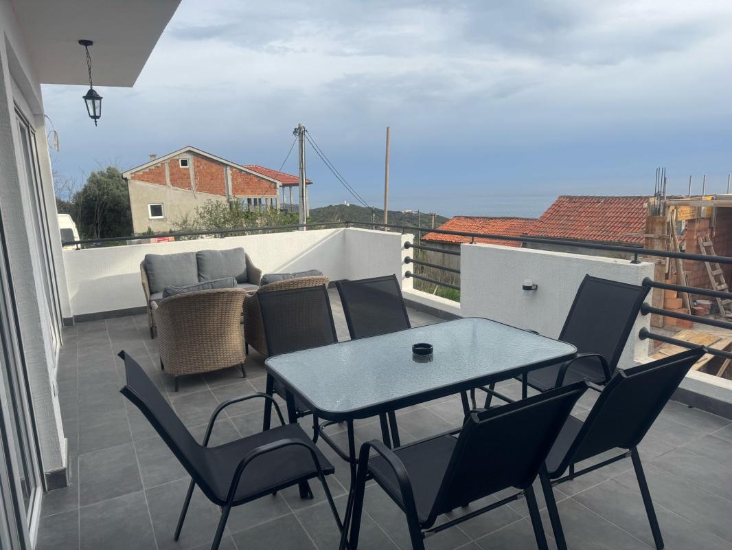 Тераса куће пружа поглед на море и планине.