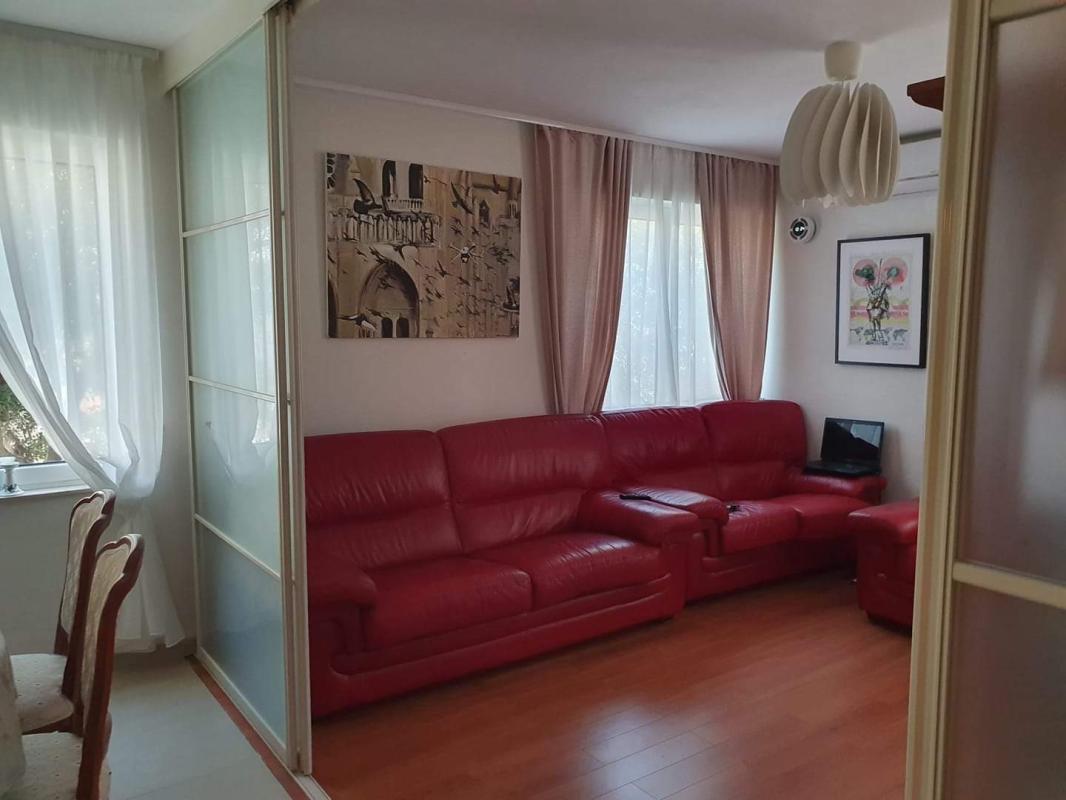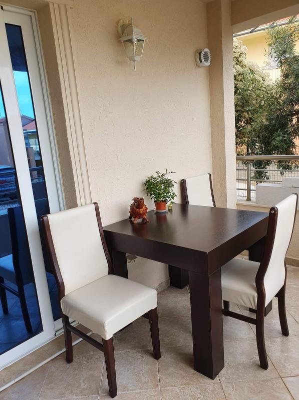 Укупна површина стана је 121 м2. Распоред: ходник, три спаваће собе, велики дневни боравак, трпезарија са кухињским простором, два купатила и велика тераса са погледом на маслиник. Стан је у потпуности опремљен: модерна кухиња са апаратима, укључујући машину за прање судова; дневни боравак са библиотеком и телевизором; главна спаваћа соба од 20 м2 са брачним креветом и две спаваће собе опремљене за децу, од којих се мања може користити као радна соба.