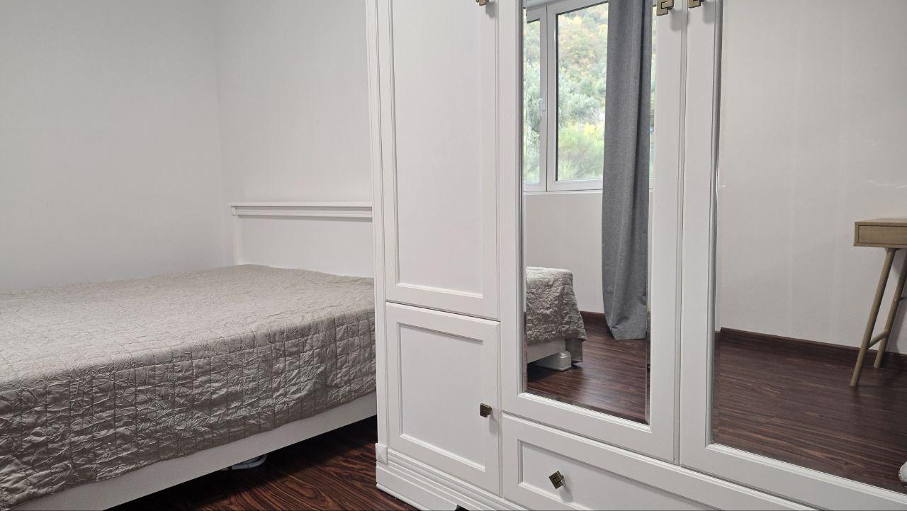Светао и модеран стан у модерном комплексу са базеном, који се налази у мирној врху Петроваца. Укупне површине 49м2, на 2 спрату (лифт). Пространа дневна соба са кухињом 30м2, са 2 великим прозорима; удобан одвојена спаваћа соба 10м2, ходник и купатило 9м2. Стан нема терасу.