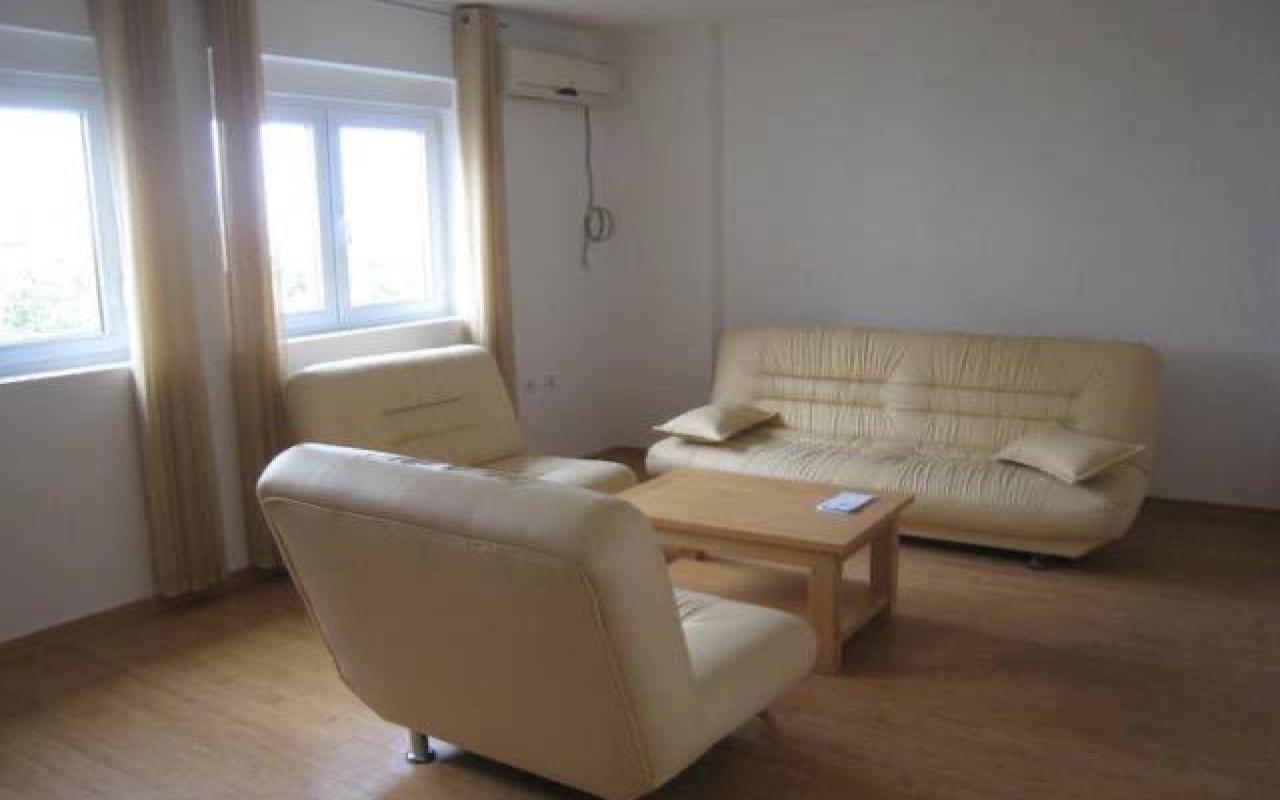 Овај пространи стан у одмаралишту Петровац од 83 квадратна метра плус тераса укључује пространу приватну собу-дневни боравак (може се опремити у засебну трећу спаваћу собу), приватну собу са кухињом и трпезаријом (може се преуредити кауч и користити као дневни боравак), две одвојене спаваће собе (једна од спаваћих соба има излаз на терасу са погледом на море) и купатило са тушем. Свака соба има клима уређај. Стан заузима цео спрат мале зграде. Стан има свој посебан улаз.