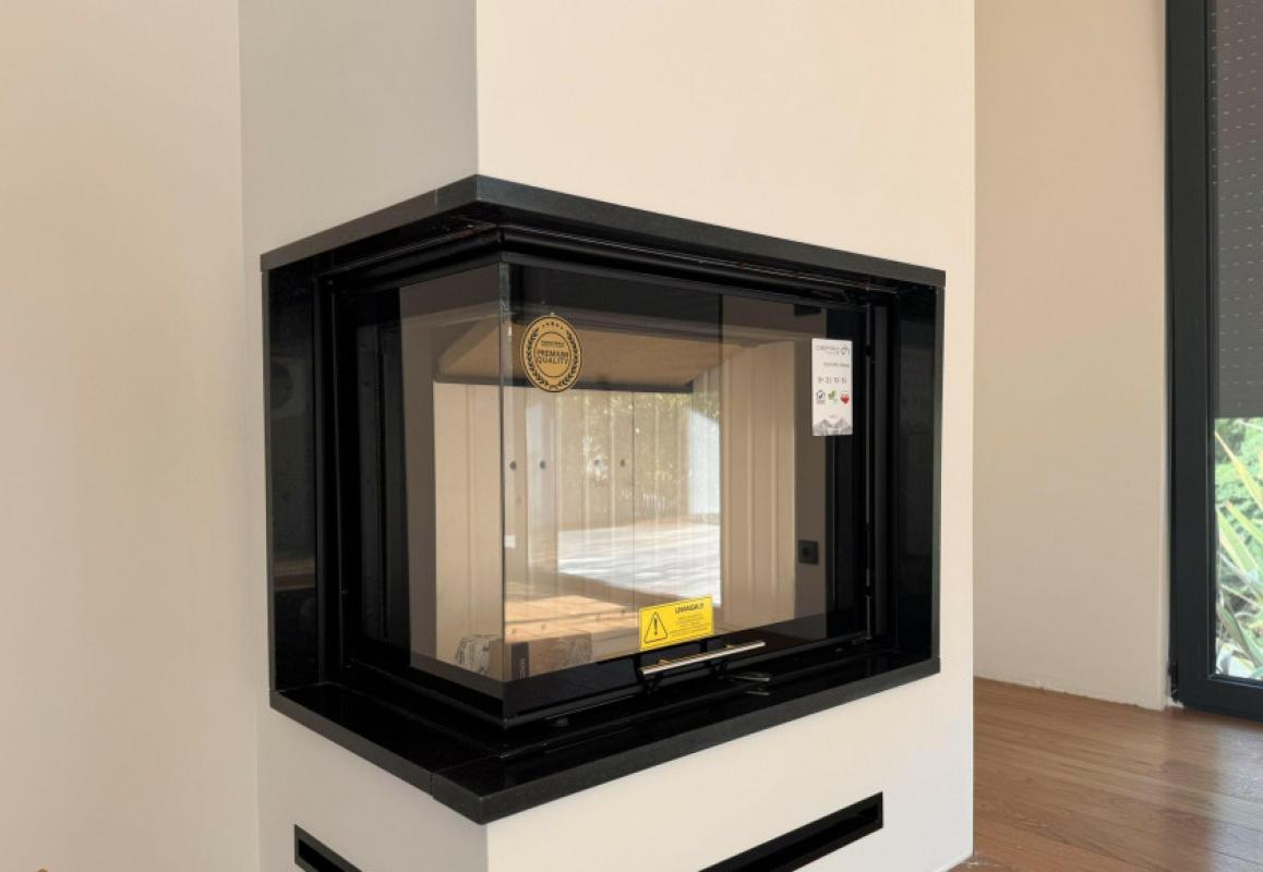 Централни део виле је отворени животни простор у којем су кухиња, трпезарија и дневни боравак складно спојени, са камином Дефро.