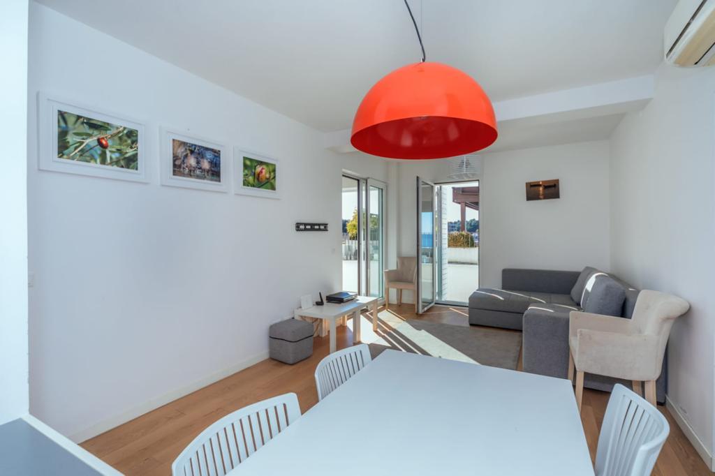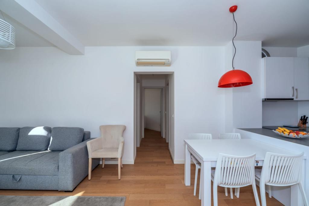 Простран, светао стан укупне површине 75 м2 (укључујући терасу), смештен на само 2 минута хода од мора и хотела Маестрал. Услови плаћања: за сезону (до октобра) 1500 € месечно + ку, за годину 1300 € месечно + ку. Цена укључује место у подземном паркингу.