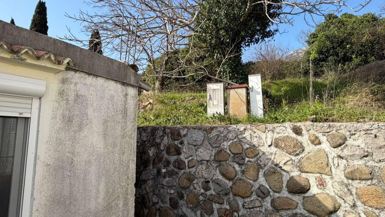 Мала кућа површине 60 м2, која се налази на узвишеној земљи на самом улазу у град. Због свог положаја, објекат има добар потенцијал за реновирање и може постати удобан дом за одмор или компактан апартман за сезонски најам. Кућа се није користила око 10 година и захтева реновирање, али њен распоред омогућава погодну конверзију простора. Унутра су две мале собе, дневни боравак са трпезаријом и купатило. Градско водоснабдевање. Са обе стране налазе се две викендице које се углавном користе током туристичке сезоне, тако да већи део године одржава мирну и тиху атмосферу. До мора 2 км, до најближе продавнице 5 минута пешке.